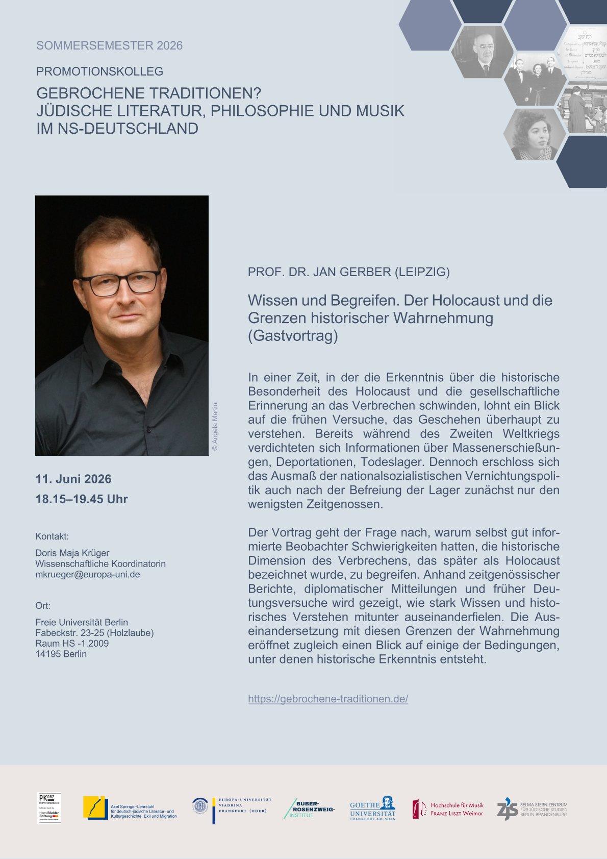Prof. Dr. Jan Gerber (LEIPZIG) Wissen und Begreifen. Der Holocaust und die Grenzen historischer Wahrnehmung (Gastvortrag)